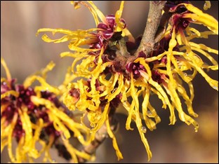 Duży krzew lub małe drzewo - 4 m. Pokrój ‘lejkowaty’ , z wiekiem szerszy niż wyższy. Wzrost średnio silny, po posadzeniu bardzo słaby. Liście pojedyncze, krótkoogonkowe, ułożone skrętolegle, podobne do liści leszczyny. Liście o wysokich walorach ozdobnych ze względu na przebarwienia jesienne i pojawienie się wszystkich barw jednocześnie. Jesienią liście są żółte, pomarańczowe, czerwone i brązowe. Kwiaty wąskopłatkowe, zebrane po 2-5 w pęczkach, na krótkopędach. W zależności od odmiany, barwa kwiatów może być jasnożółta, ciemnożółta lub czerwone. Kwiaty, zależnie od pogody i odmiany, kwitną od XII do III. W czasie kwitnienia, płatki znoszą temperatury do -10 0C (do -12 0C). Owocem są zdrewniałe torebki, które dojrzewając, gwałtownie pękają i wyrzucają nasiona na odległość (autochoria).